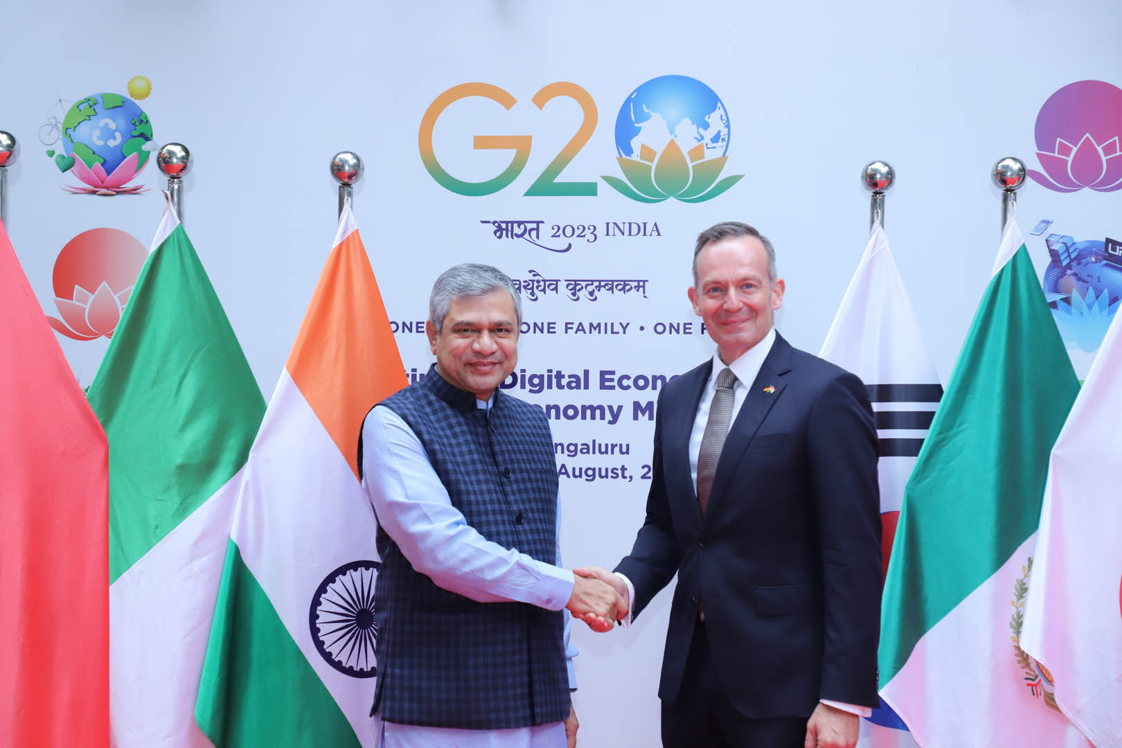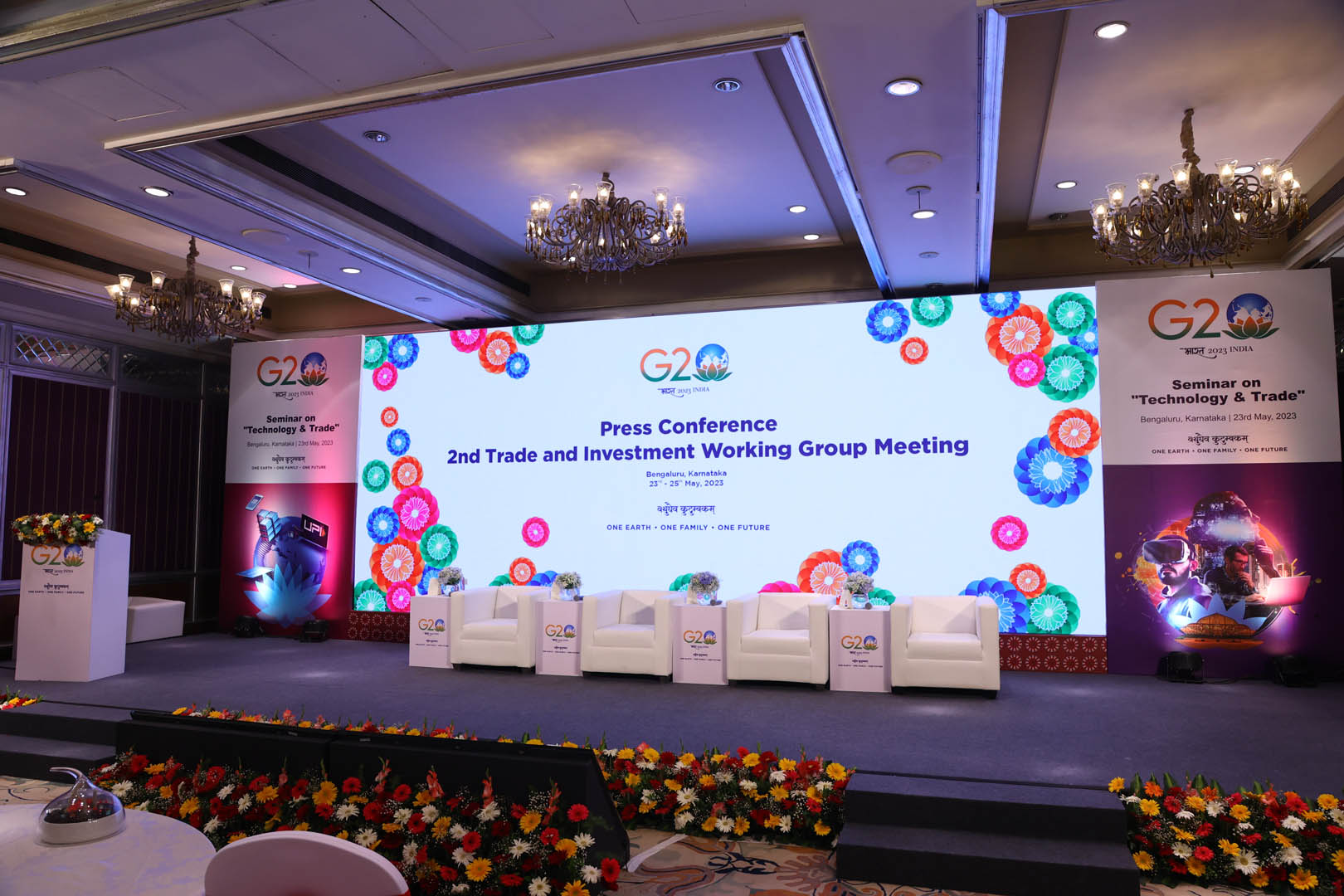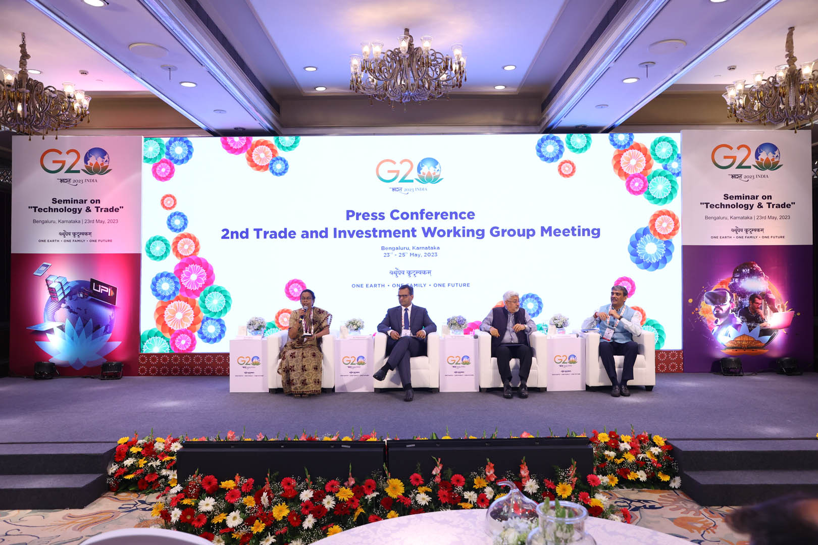 The Ministry of Commerce and Trade hosted the 2nd Trade & Investment Working Group Meeting at The Taj West End, Bangalore, from May 23rd to 25th, 2023.   The Ministry of Electronics and Information Technology hosted the 4th Meeting of the Digital Economy Working Group & Digital Economy Ministerial Meeting from August 16th to 19th, 2023, at The Taj West End, Bengaluru.