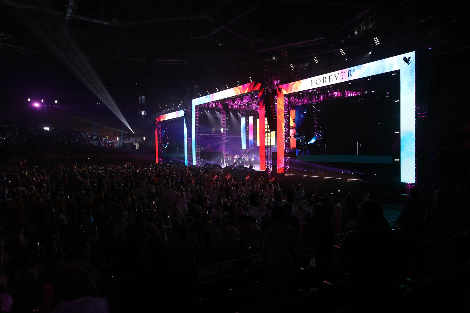 The Forever Global Rally 2024, held at IGI Stadium in Delhi from April 6th to April 14th, was a resounding success. Attendees from over 160 countries gathered to participate in a vibrant series of educational workshops with 20000 local audience from India. The event featured stunning decor, impressive staging, state-of-the-art sound and lighting, and expertly managed trussing and props. The seamless backstage operations ensured smooth movement and coordination, contributing to an unforgettable experience for all.